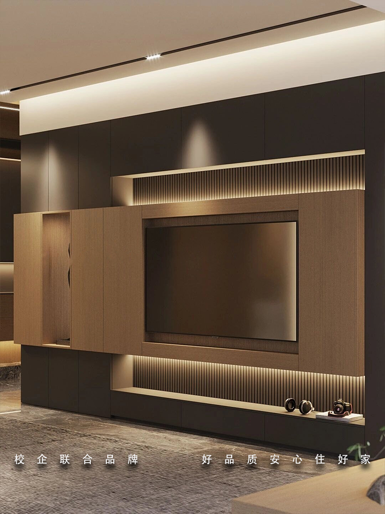 也有客廳的現(xiàn)代簡約風(fēng),深淺木色與灰色的組合,溫柔又大氣;客廳的電視柜不僅是視覺焦點,還能藏起各種雜物;